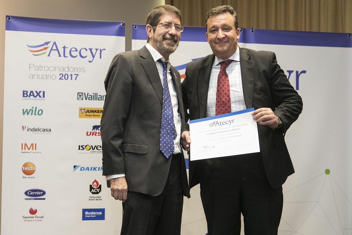 En el almuerzo de hermandad de Atecyr del pasado 16 de enero se hizo entrega de los diplomas a los alumnos de los cursos de experto. Germán recibió adicionalmente, un reconocimiento al mejor expediente de las dos convocatorias de la V edición Curso de Experto de Climatización