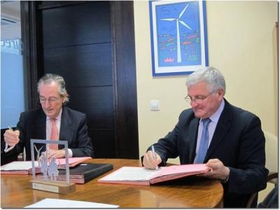 Madrid, 23 de noviembre de 2011- la Fundación de la Asociación Técnica Española de Climatización y Refrigeración (FUNDATECYR) y el Instituto Enerxético de Galicia (INEGA) han firmado un convenio de colaboración en materia de formación en ahorro y eficiencia energética para los profesionales del sector de la edificación. En este sentido, el Director de Inega, Eliseo Diéguez García, y el Presidente de Fundatecyr, Javier Moreno de la Cuesta, firmaron hoy el convenio de colaboración, para impartir durante el próximo año un total de quince cursos en distintas materias de ahorro energético.