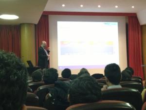 Presentó los distintos actos D. Miguel Ángel Navas Martín, Presidente de la Agrupación ATECYR castilla y León, que presentó un video sobre la Feria de Climatización que se celebrará del 26 de febrero al 1 de marzo. Seguidamente presentó al ponente, D. Javier Aramburu, Director Técnico de TROX que comentó como en la actualidad, los sistemas aire-agua son empleados en modernos edificios; especialmente en edificios de oficinas y administración como una solución de bajo consumo energético idónea para la ventilación y climatización de los espacios.