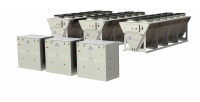 Cada sección exterior contiene los intercambiadores de energía con aire externo, con ventiladores cableados y panel de control eléctrico.