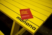 Toda la escenografía de Mañana está pensada para fomentar el diálogo y el entendimiento. Más de 200 mesas de picnic, diseñadas especialmente para esta primera edición, conforman los espacios, porque alrededor de una mesa es donde se suelen resolver los problemas cotidianos. Todo ello en los más de 14.000 m2 que forman el pabellón 14.1 de IFEMA.