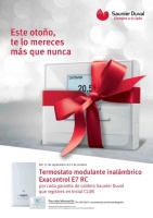 Del 15 de septiembre al 15 de octubre, Saunier Duval regala un termostato inalámbrico Exacontrol E7 RC a los profesionales que registren, a través de la APP Instal CONNNECT o en la página web de Instal CLUB, las garantías de las calderas Saunier Duval que instalen.