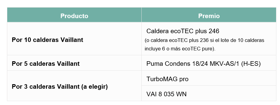 Del 15 de enero al 15 de febrero, los profesionales que registren en Vaillant Premium los números de serie de las calderas Vaillant que registren pueden conseguir producto de la marca de regalo.