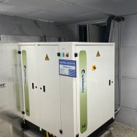 Unidad condensadora Pecomark para temperatura positiva (-10ºC / + 45ºC), de 12 kW, con una carga de refrigerante de 30 Kg para todo el sistema de positiva. Compresores Bitzer.