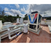 Esta nueva gama de enfriadoras/bombas de calor ofrecen servicio de climatización mediante sus sistemas hidrónicos, ya que utilizan el agua como fluido caloportador y un refrigerante de bajo PCA e alta eficiencia y sostenibilidad.