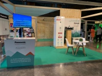 Panasonic mostró diferentes soluciones de climatización, aptas para edificios Passivhaus, como la bomba de calor Aquarea All in One Compact, un sistema aire-agua de máxima eficiencia para calefacción y producción de agua caliente, ideal para nuevos hogares y casas de bajo consumo de energía como son las Passivhaus.