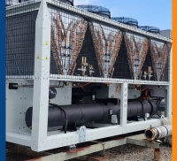 Se trata de una ADVANCE EQRLHSS 4450 EC, una bomba de calor reversible monobloque de alta capacidad con condensación por aire y ventiladores helicoidales. Una versión ultrasilenciosa con insonorización de los compresores y con ventiladores de velocidad reducida.