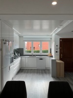La reducción de la demanda en este tipo de intervenciones se realiza de una forma sencilla mediante la combinación de trasdosados de placa de yeso laminado. Una de las soluciones aplicadas para lograr que el chalet pasase de una calificación E a una calificación A en el certificado energético son las placas de yeso laminado Placo® BA y Placo® PPM para los contornos sunthaldress. En concreto, Placo® PPM reduce la absorción de agua y proporciona un adecuado aislamiento acústico. La perfilería se ejecutó con los perfiles Óptima de Isover, cuyo diseño facilita su anclaje al aislamiento.
