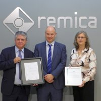 Durante el acto, celebrado ayer en la sede de Remica, también han estado presentes José Sierra, director de I+D+i de Remica y Esperanza Martínez, directora de Certificación de Sistemas en EQA.