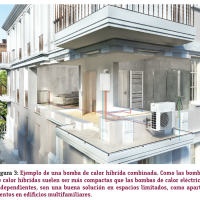 El discurso anterior puede tener matices cuando hablamos de la renovación energética del parque de edificios residenciales existentes en España (principalmente formado por bloques verticales multivivienda). En este caso, no siempre va a ser viable por cuestiones técnicas y/o económicas, la electrificación total de nuestras demandas térmicas de confort. Es en este marco donde la implantación de sistemas hibridos (en que parte de la demanda térmica se resuelva con bomba de calor y parte con equipos de combustión de alta eficiencia), puede facilitar la consecución de los objetivos de descarbonización en esta tipología de edificios.